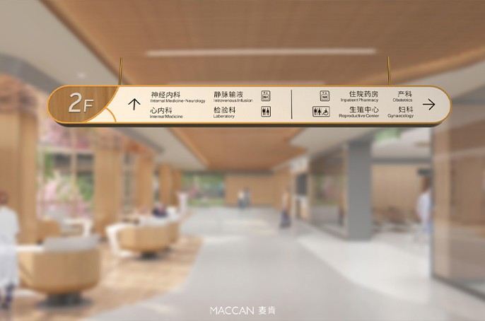 在保證使用功能的基礎下,麥肯更加注重人性化、個性化,導視牌是連接人與健康、內心與希望的橋梁,醫院標識系統體現了現代醫院的人文精神必要性、系統性,合理規劃,物盡其用,標識能體現醫院的形象、歷史、個性,乃至??铺亻L、風格、作風,呈現其洋溢親情的企業文化氛圍。