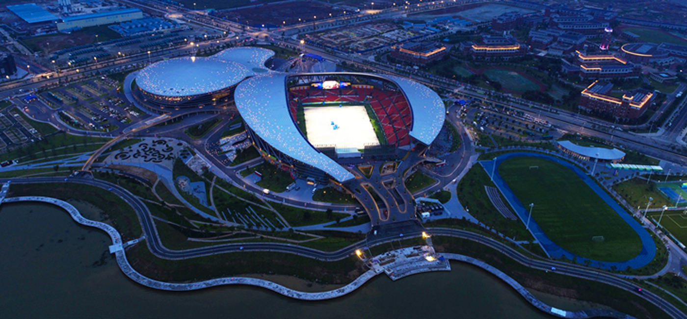 肇慶新區體育中心由廣東省建筑研究院進行設計,設計充分考慮了肇慶獨特的山水布局與文化特點,以“硯生水墨”為主題,“一場一館一園”緊密相連,更考慮場館賽后的使用出發。本項目屋面采用不銹鋼連續焊接屋面系統,在國內屬于首例。