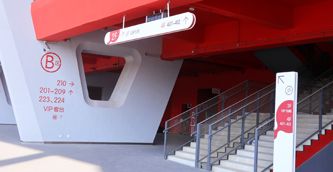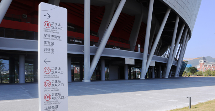 為了方便用戶定位,麥肯團隊受邀為其進行導視系統服務。整套導視系統采用簡潔的線條、黑白分明的色調和簡潔大方的設計,使肇慶新區體育中心整套導視系統呈現出美觀、實用、簡潔、大方、明朗的立體清晰指引。