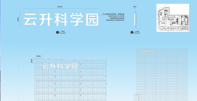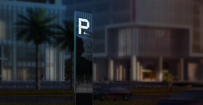 麥肯秉持“科技、時尚、年輕、未來”的設計理念,充分表達了潮流、前衛、創新以及富有活力的詮釋。從玻璃、星空、未來采集設計元素,對元素進行組合、運用、修飾、轉化和再造等,應用到云升科學園標識系統設計之中,色彩采用了天際藍,材質則采用不銹鋼烤漆,亞克力貼于玻璃表面,玻璃背面貼膜,信息內容鏤空,圖形部分透光,內置LED光源,奪目星空,璀璨未來。