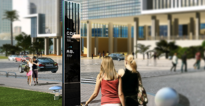 麥肯設計的導視系統融入園區建筑,突出大氣、藝術,體現科技與國際性的同時也大氣美觀。