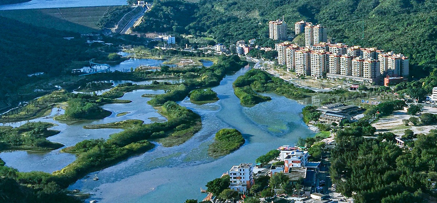 東涌紅樹林濕地景區位于深圳市大鵬新區南澳街道東涌社區,是大鵬新區首個區級投資的濕地公園。景區總占地面積49.4萬平方米,以紅樹林及基圍魚塘為基礎,通過空中廊橋、濕地棧道、登山步道等游覽線路,串聯起人工濕地、淡水濕地、咸淡水濕地和魚塘濕地,構建了一個“人、鳥、林相望、不相擾”、“紅樹鄰里”生態社區。