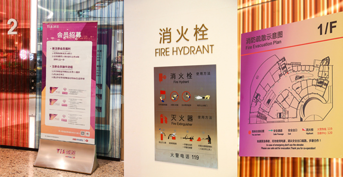 麥肯標識團隊為港鐵TIA頌薈商場標識形象量身定制,從而為商場注入新鮮活力。設計師從消費者的角度出發,策劃并設計了全套導向系統,并在其中融入了明亮的視覺圖標體系。麥肯標識設計了一套親切友好的視覺形象,其視覺語言輕松靚麗,結合商場空間及裝飾風格使標識與商場氣質相符,以靈動的標識貫穿整個商場空間。