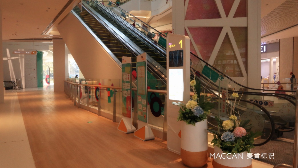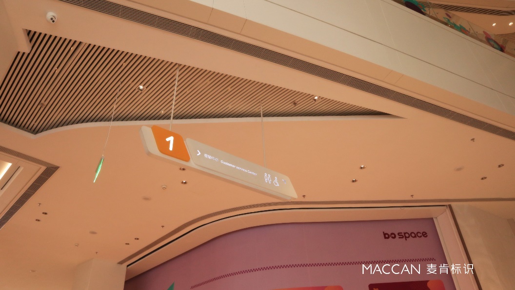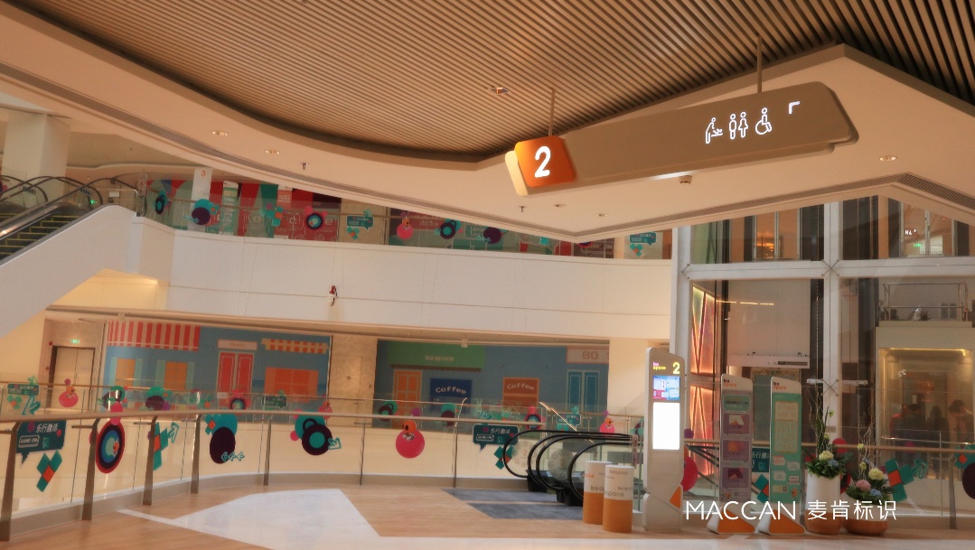 麥肯團隊從空間規劃、標識景觀融合以及形象定位,打造出符合當代都市白領人士商務生活與休閑娛樂的標識指示體驗式場景,意在突出購物中心的多元化。導視板采用白色的配色,將環境圖形標識設計融于其中,使用暖色燈光來營造現代感。