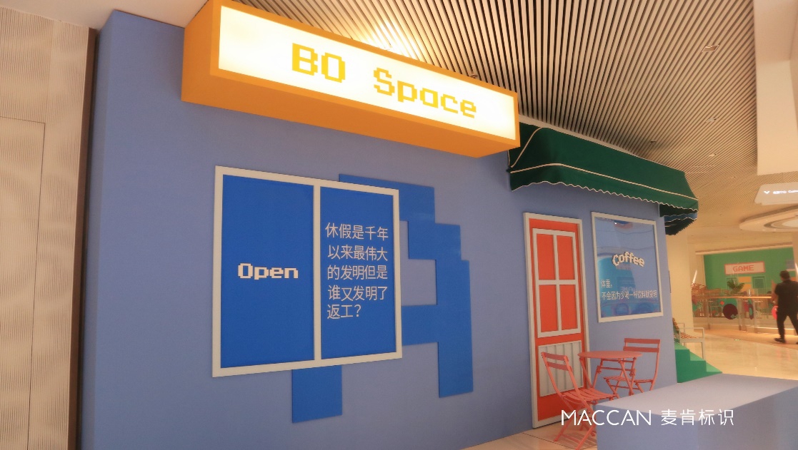 BO SPACE 總建筑面積約3萬㎡,是針對年輕白領和活力青年全天候生活所需打造的創意商業空間:秉承小而精的格調特性,無限承載了大眾對車公廟商業中心購物新地標的期待。而我們所期待的BO SPACE,不僅僅只是一個購物中心,它更像是獨屬于我們年輕一代人對生活、對未來的一種展望,同時也是我們實現自我溝通和認同的一種方式及渠道,麥肯受邀為BO SPACE購物中心標識導視系統進行設計制作。