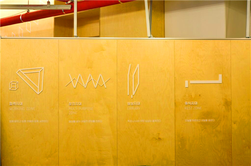 韓國首爾“無重力地帶G谷”是為G谷(首爾數碼產業園區)和附近的就業青年,以及正在準備就業·創業的青年而設立的創意館。著名標識設計公司Everyday Practice受托為該創意館完成標識設計。