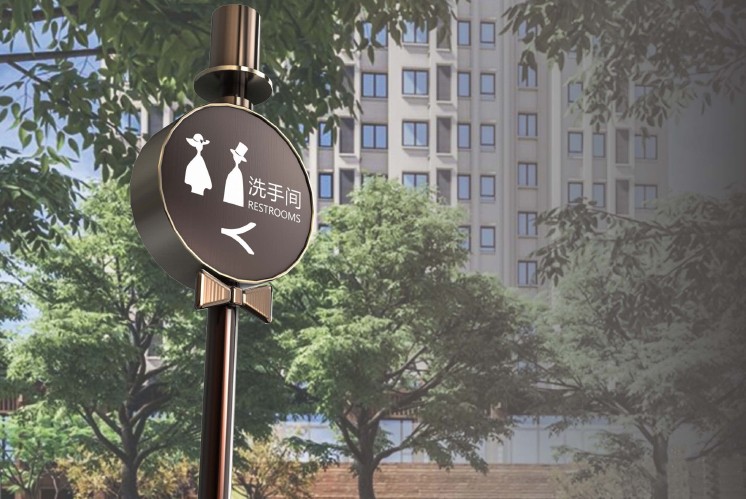 主色調上“品質金”的選擇,標牌造型及形式的確定,圖標icon的設計,文字內容排版,凸顯紳士品質,無一不是專業性的體現。導視設計除了最本質的方向引導之外,能夠將文化進行傳播,還能引導一種新的生活方式,讓鄰里關系有溫度,使社區生活有色彩,人們在這里把生活過成詩,富盈美好而精致。