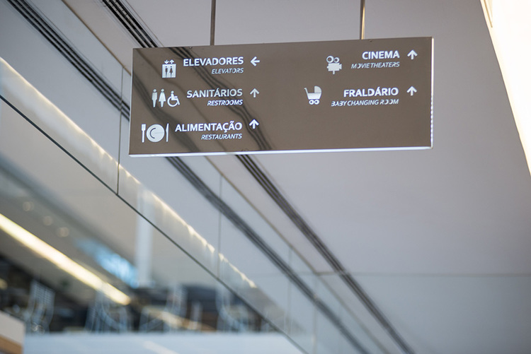 JK Iguatemi購物中心位于巴西圣保羅,是當地為數不多的擁有一線品牌的商場,旨在提供優質的購物體驗,2buy公司受邀為其進行導視系統設計?;谏虉龅慕渫庥^和內飾, 2buy公司采用鏡面鋼和燈箱材質,燈箱兩面均使用帶有鏤刻信息的鏡面鋼貼面,信息清晰可見,便于夜間尋路。標牌外觀與空間相得益彰,打造了清爽、現代的購物環境。