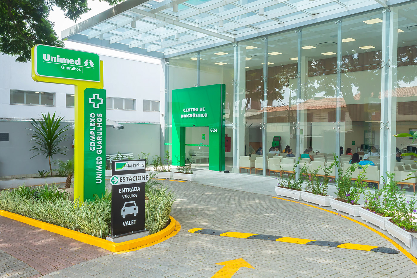 聯合系統是世界上最大的醫療合作系統,也是巴西最大的醫療援助網絡,覆蓋該國 84% 的領土。Luan Piani受邀為其瓜盧流斯市鎮的聯醫診斷中心進行導視系統設計。