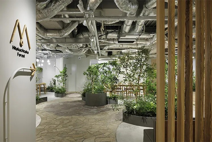 位于東京縣的常陸坂中央大廈,由前田建設株式會社負責其全面的翻新工程,其中一樓的多功能會議區域“森之語堂”以其獨特的木質裝飾、生機勃勃的綠色植物和充滿趣味的標識設計而脫穎而出。terada設計公司受委托為這一空間打造一套完整的導視系統,旨在與室內裝飾風格相得益彰。