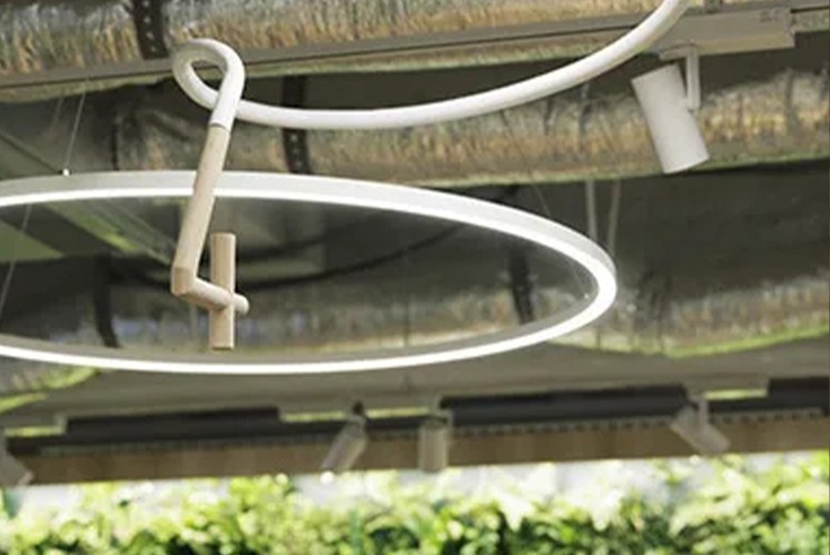 數字編碼的底座設計巧妙地與空間中的線圈狀燈飾相融合,這種設計上的連貫性使得導視系統與整個空間的裝飾風格完美統一。設計公司精心選用木材和金屬作為標牌的主要材料,增強了空間的自然感,也為來訪者營造了一個溫馨而舒適的工作環境。
