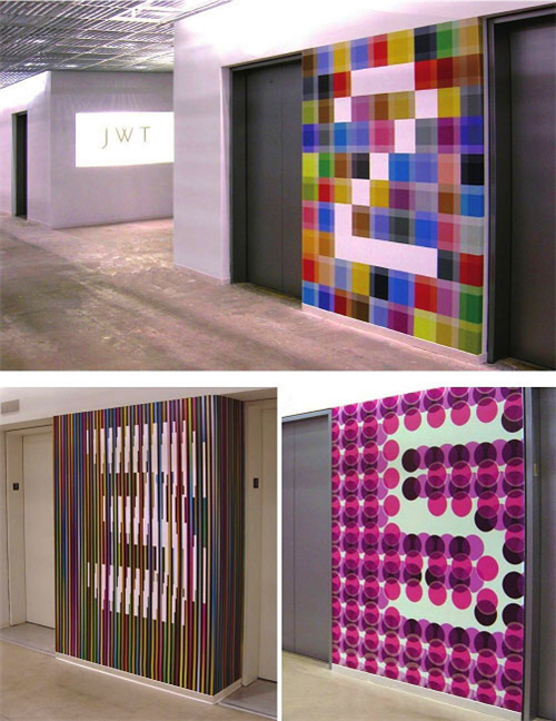 EGG設計團隊選擇放棄廣告公司為客戶活動所設計的內容。取而代之的是,他們憑借對廣告、媒體,以及流行文化敏銳的察覺,設計出多彩的空間導向元素。各個樓層內采用的獨特圖案分別代表了各部門獨一無二的特色,例如視頻編輯部的垂直網線板和印刷部門的網點花紋都個性鮮明。