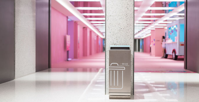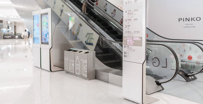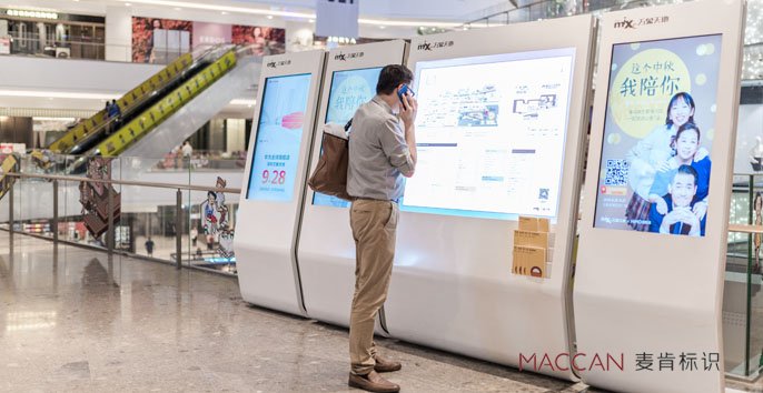 麥肯團隊針對萬象天地“全新的漫步式城市創作空間”的定位,制作了一整套清新、簡潔的標識導視系統,在物質消費之外,增強了藝術化、生活化的感覺。