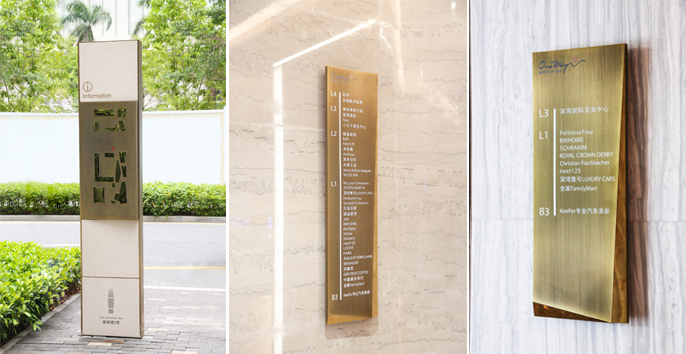 深圳灣1號作為深圳特區的標志性地產項目,代表了城市面貌和精神,同時又體現出設計師們建筑藝術的出色造詣。麥肯標識承接了深圳灣1號整體導視系統的制作安裝,創建了一套獨具匠心的視覺識別系統。