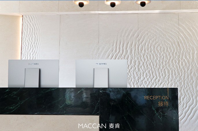 以提升深圳龍崗崗宏整體建筑空間和導視系統為重點,提升營銷空間高端商務服務功能,麥肯標識設計是在舒適與奢華、顯示、和欲望之間,尋找平衡的永恒調整,立足場地,融入國際化與未來感、以及新中式,把標識高級定制概念帶進住宅營銷空間。