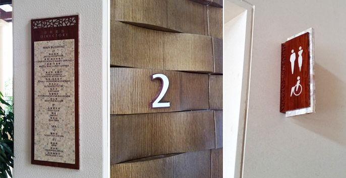 酒店內的各種導向標識都呈現出簡約而有質感,在為客人提供完善貼心的服務的同時,完美展現酒店的品質。